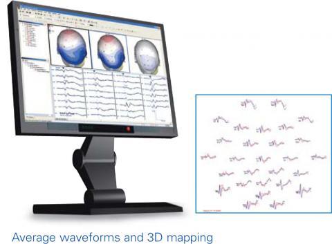 3D ЭЭГ/БПФ отображение может быть полностью синхронизировано с ЭЭГ и таблицей событий.