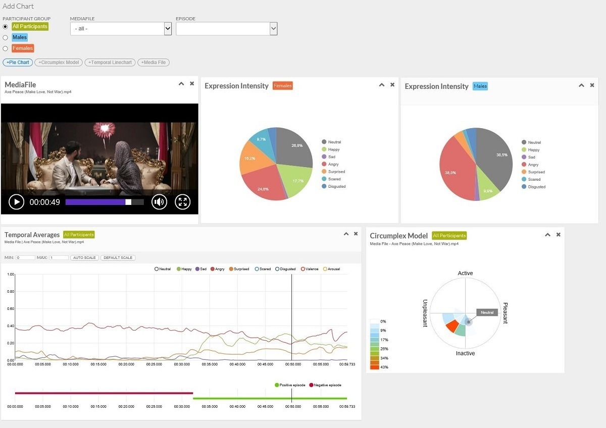 исследования рынка, чтобы получить представление о пользовательском опыте. Регистрация эмоций путем анализа лицевых экспрессий дает дополнительное и объективное понимание воздействия, симпатии и неприязни к продуктам, мобильным приложениям, веб-сайтам, рекламным роликам и т.д.
