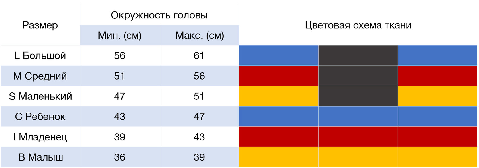 Мы используем четыре различных цветных ткани в разных комбинациях, чтобы Вы могли быстро найти шлем нужного размера. Также этикетка с указанием размера расположена на шее.
